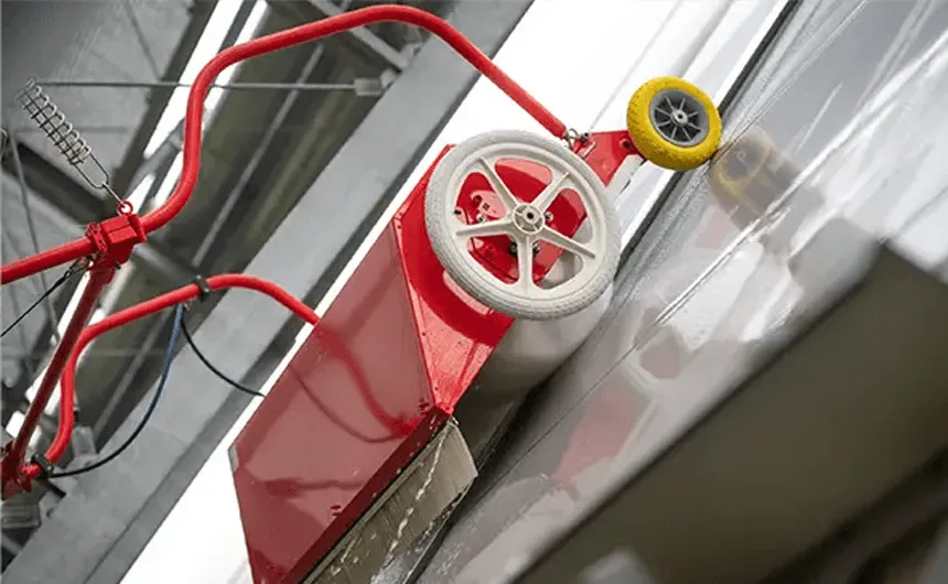 Aus einer Idee wurde Realität und damit kennzeichnet das Jahr 2012 die Geburtsstunde des ersten Glasdachreinigungsroboters: hyCLEANER Blue Evo. Die Maschine macht die Reinigung nicht nur sicherer, sondern auch wesentlich effizienter als die manuelle Reinigung. Mit Funksteuerung aus dem Arbeitskorb wird die Maschine über die Flächen gesteuert. Einige Entwicklungsstufen weiter wurde die Maschine später zum GLASS ROOF und heute zum glassROBOT.